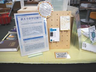 モニター選書で選ばれた90冊の本を、学生モニター手作りのPOPと一緒に展示しました。モニター選書の展示は毎回人気で、展示期間中に2回、3回と貸し出されていく本もありました。すてきなPOPがたくさん並び、見ごたえのあるコーナーになりました。